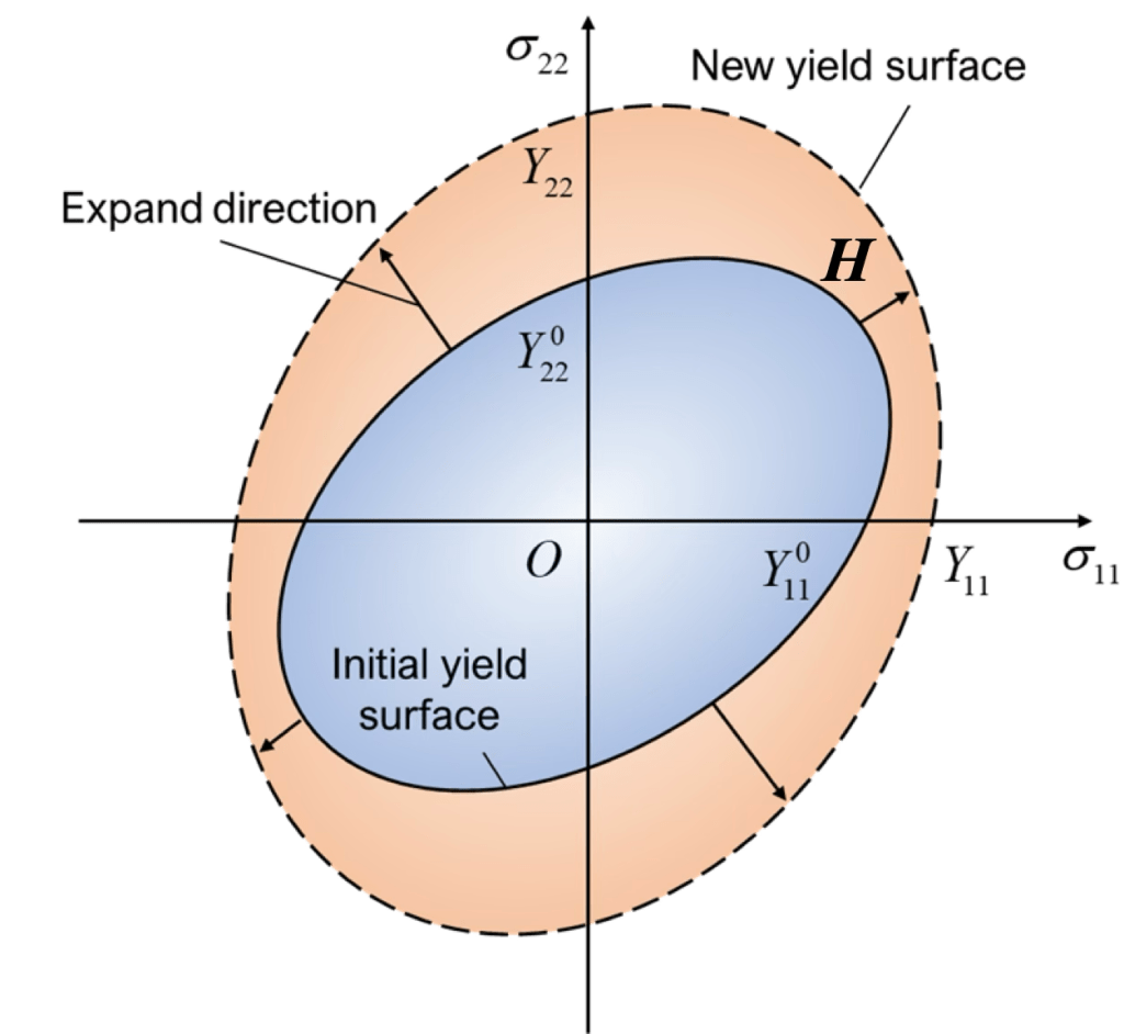 The key to handle anisotropic plastic hardening is finding a tensor which can map between initial yield state and the current stress state. Once the exact tensor is determined, it is relatively easy to identify the current yield stress state based on mapping from initial yield surface.