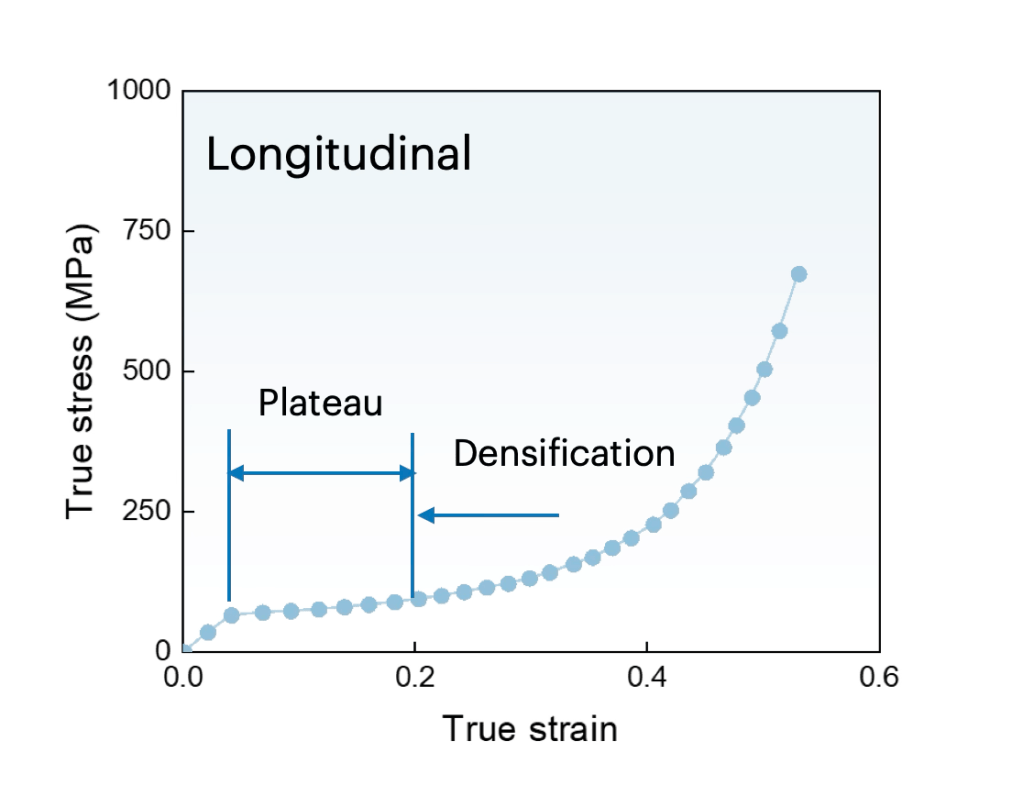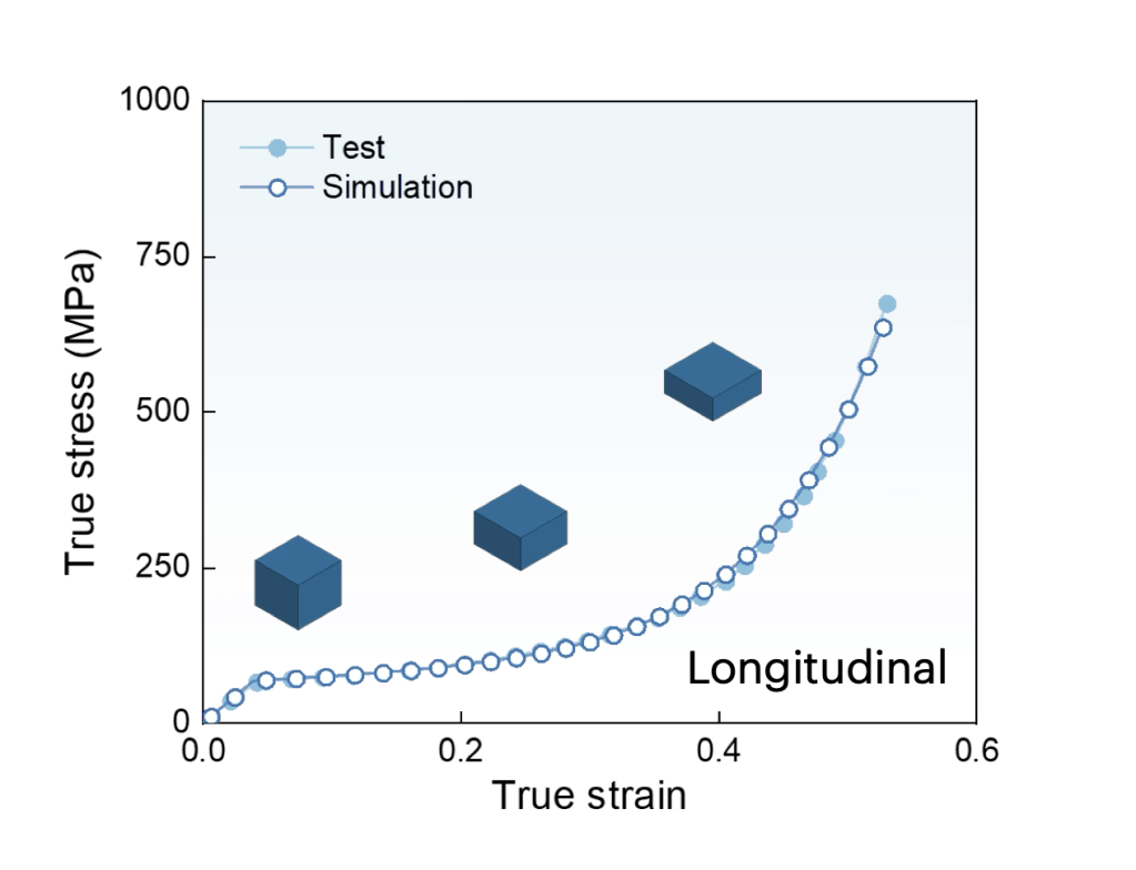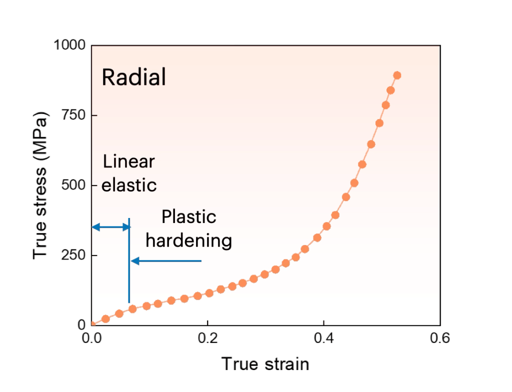 To determine anisotropic hardening tensor, the true stress-strain curves from two material primary directions (radial and longitudinal) from a cutted horn sample are shown as below: