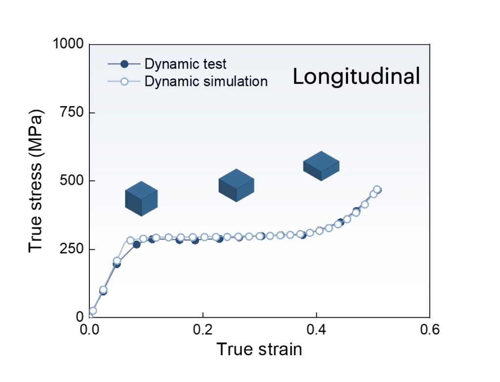 The constitutive model was also validated under strain-rate effect and achieve very high correlation to the dynamic test data.